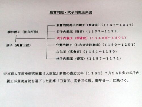 後白河院の第一皇女亮子(りょうし)内親王は以仁王や式子内親王の同母の姉に当り、卜定された伊勢斎宮を同母の好子内親王に交替した後は、安徳天皇の准母及び後鳥羽天皇の国母として皇后に叙せられ、皇后を辞した文治3年(1187)に女院号を賜り殷富門…