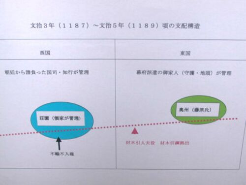 文治3年(1187)10月、重源は周防国杣でこれまでに伐採した130余本の巨財のうちから16本を携えて九条兼実邸を訪問し、材木伐採並びに運搬人夫の不足や材木運搬用綱の原料となる麻苧の不足による杣から佐波川までの巨木の杣だし作業が困難に直面…
