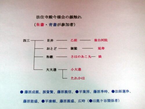 仁安4年(1169)2月、43歳の後白河院が最後の俗体で出家のいとまで下鴨神社を参詣した時、神社前の梅の木に降りかかる雪と白い梅との区別がつかないほどで、さらに朱塗りの玉垣までも白く辺り一面が白妙の風情であった。さて、法会も御神楽、法華経…
