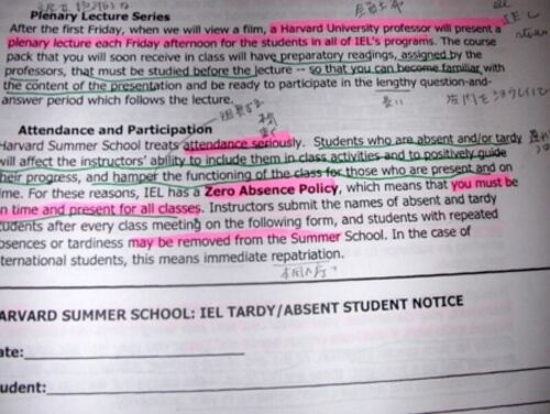 2004/06/28 (Mon) I was surprised at the words "Zero Absence Policy" while reading the English training guide distributed before yesterday's leveling test. According to the text, summer school authorities require students to attend all clas…