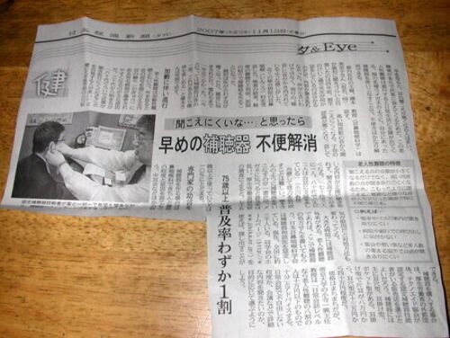2007年11月13日の日経夕刊の「早めの補聴器 不便解消」の記事に思わず目が行ったのは、遠からず私も直面する問題であったばかりでなく、「75歳以上普及率わずか一割」の小見出しに惹き付けられたからである。 というのは、私は「補聴器は国民健康保険の対象…